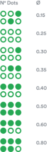 Todos os nozzles disponíveis na EVOLT são identificáveis com a respectiva numeração nas faces da cabeça sextavada.
