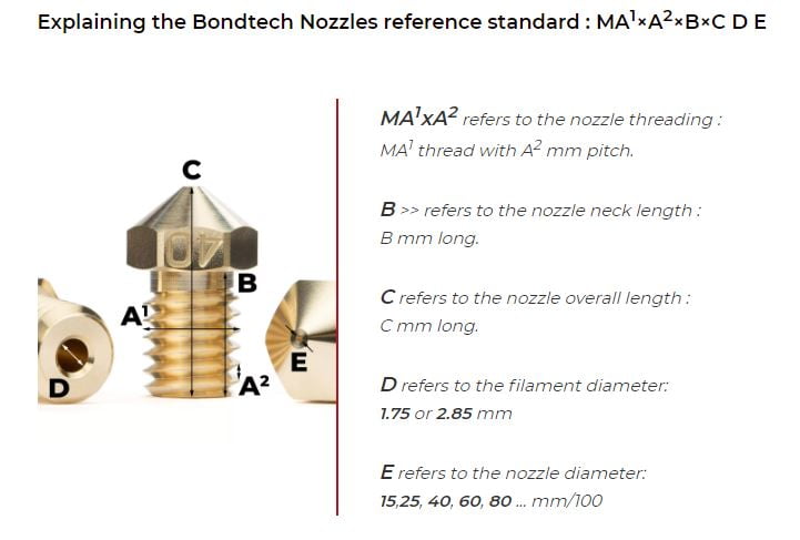 0.25mm Latão Coated Nozzle M6×1×7.5×12.5 MOS 1.75 E3D V6 Revestimento de Níquel – Bondtech