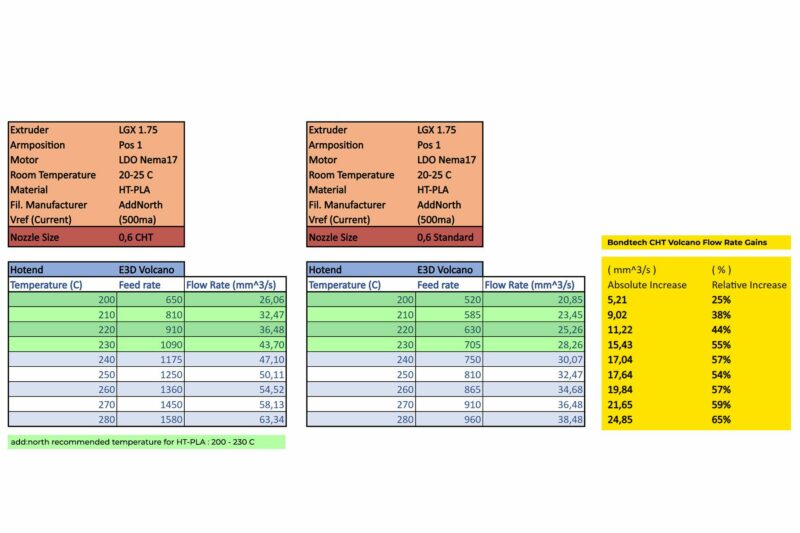 Os nozzles Bondtech CHT® dividem o filamento em 3 filamentos mais finos permitindo derreter o material a partir do interior. Ao fazê-lo, o material derrete mais rapidamente e podem ser utilizadas taxas de fluxo mais elevadas.