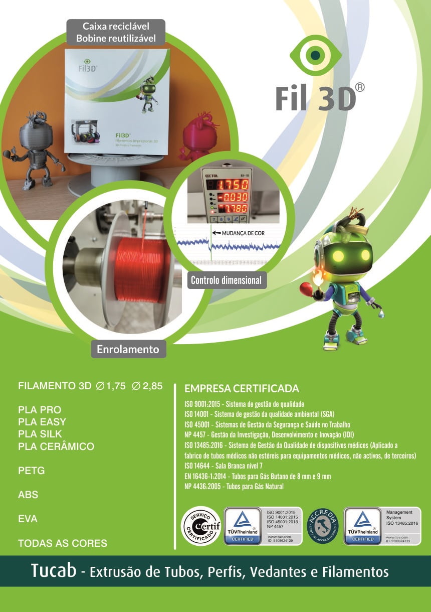 Com muito orgulho, este é um filamento fabricado em Portugal segundo as mais rigorosas normas de qualidade.