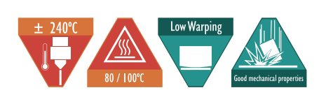 Este Filamento pode suportar grandes temperaturas, é máquinal e pode ser diluído em acetona.