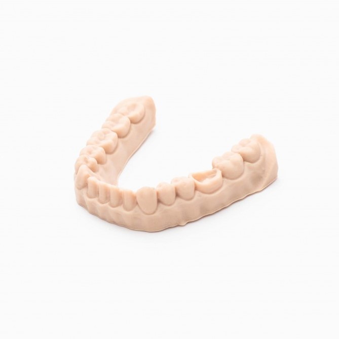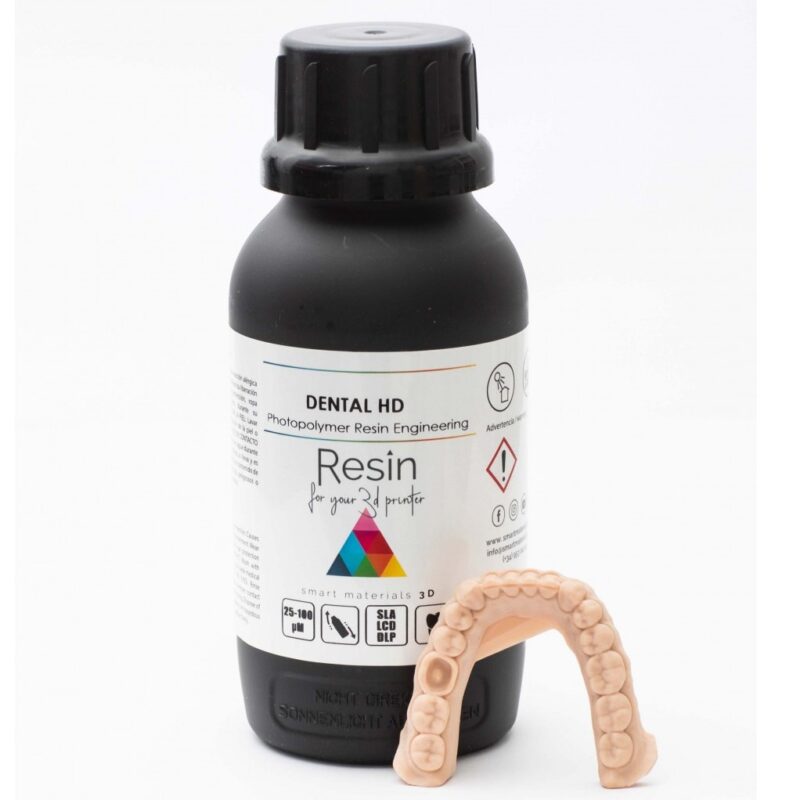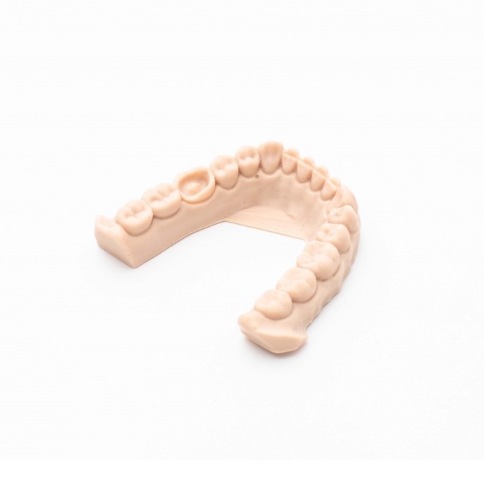 A resina DENTAL HD RESIN é um fotopolímero totalmente mate em bege desenvolvido para o sector dentário. A sua grande estabilidade dimensional e baixo encolhimento permite fazer peças com grande precisão. O acabamento mate realça todos os detalhes do modelo permitindo uma visualização perfeita nos cortes e marcadores.
