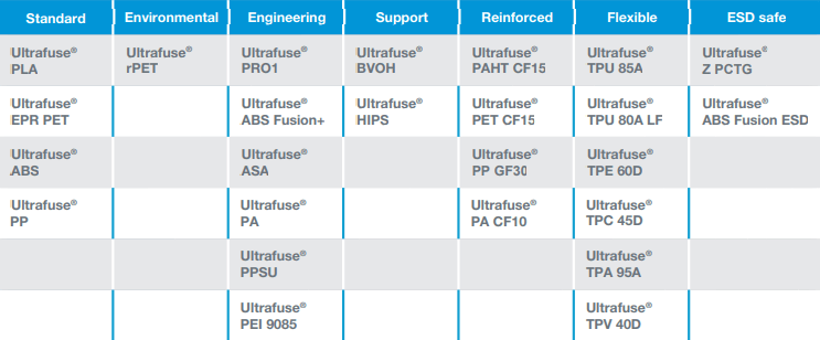 Gama de produtos Ultrafuse: