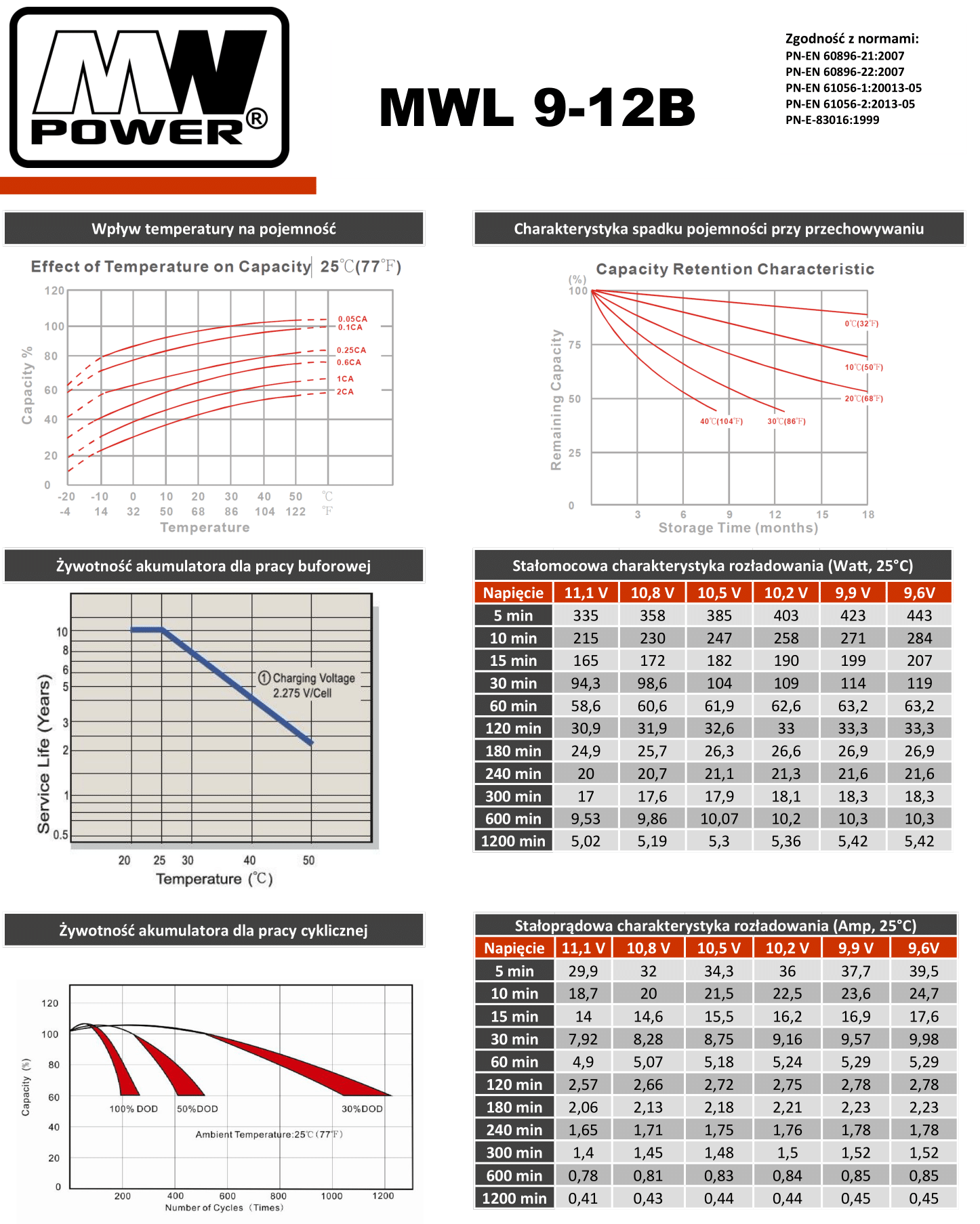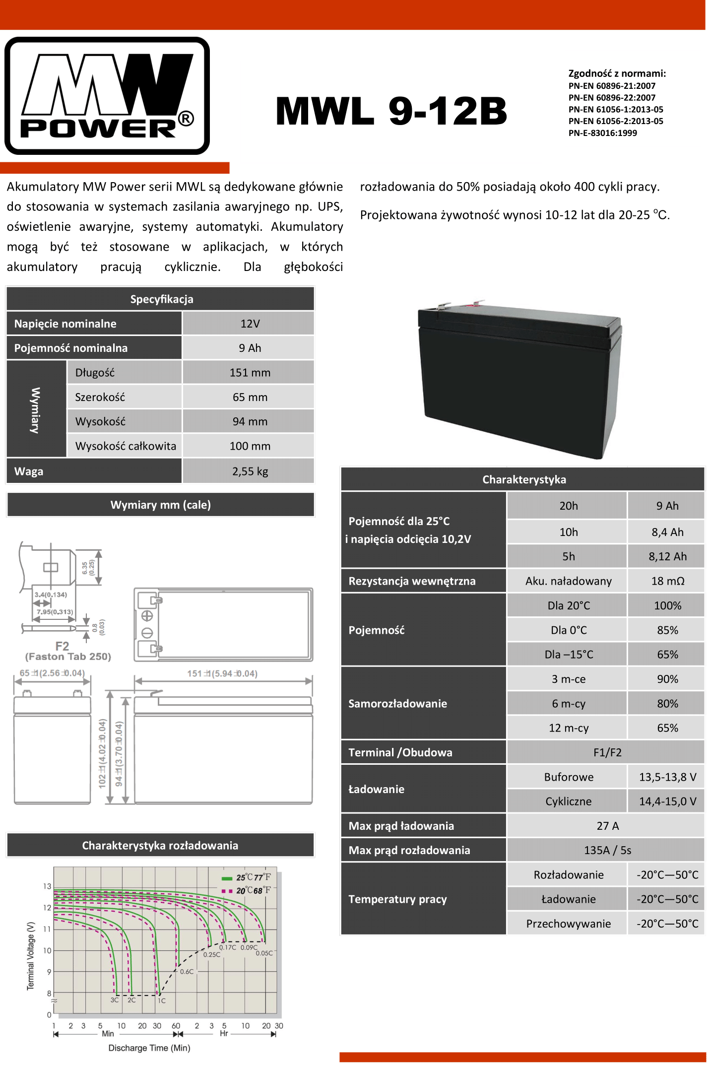 As baterias MWL são principalmente dedicadas a aplicações em sistemas de alimentação ininterrupta de energia, por exemplo UPS, iluminação de emergência, sistemas de automação.