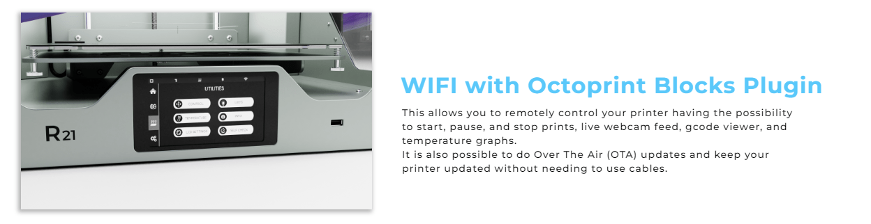 Controlo remoto com Wi-Fi (Connectivity Kit) – Com a nova conexão wi-fi, pode iniciar, pausar e interromper impressões remotamente, permitindo também acompanhar o desenvolvimento da impressão enquanto assiste a uma livestream da impressora.