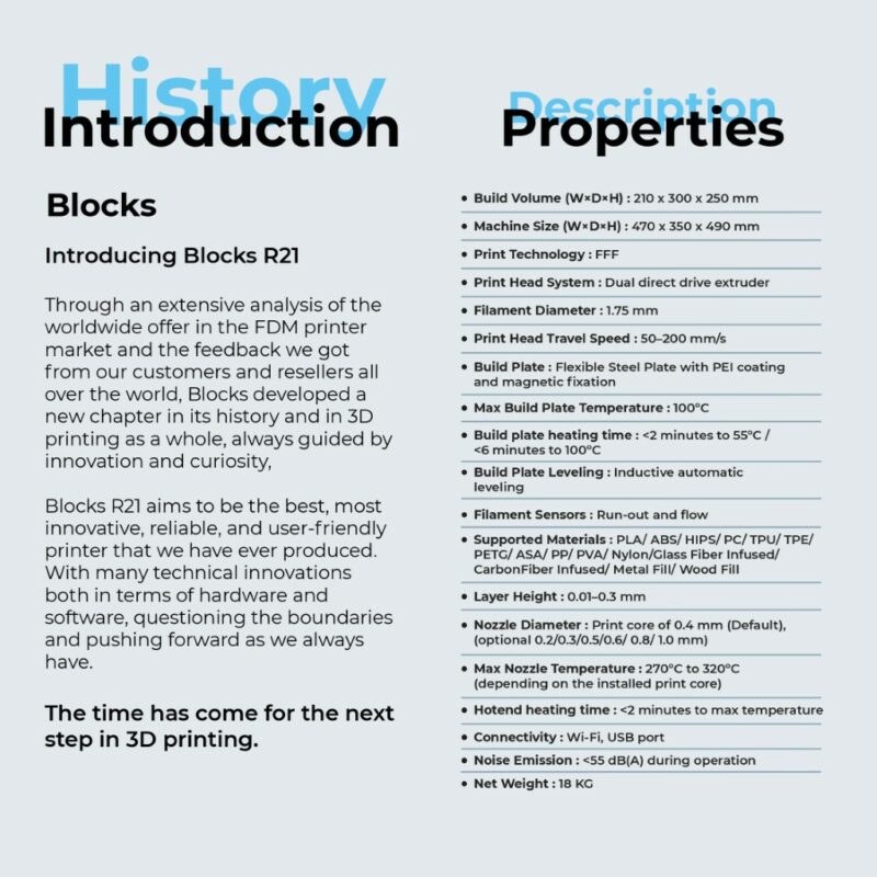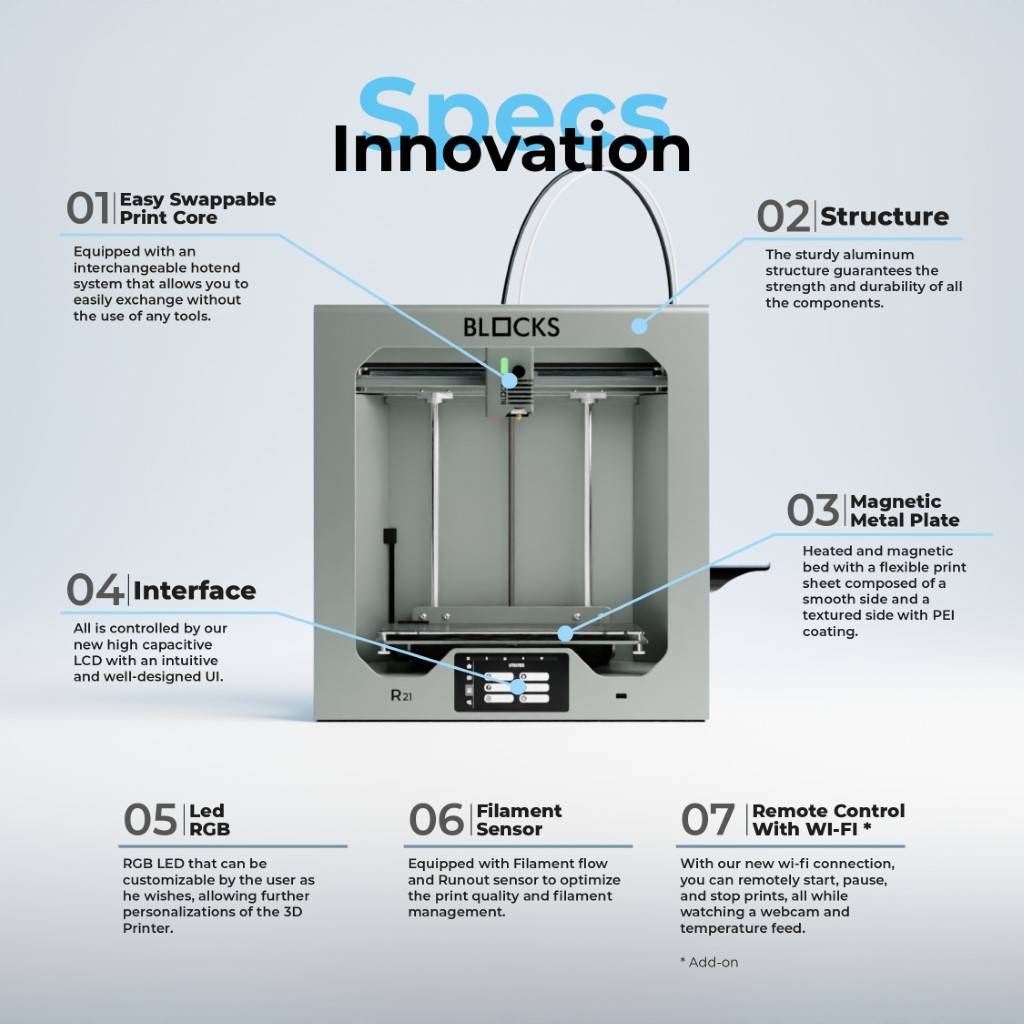 BLOCKS R21, Impressora 3D com Auto Nivelamento, orgulhosamente fabricada em Portugal.