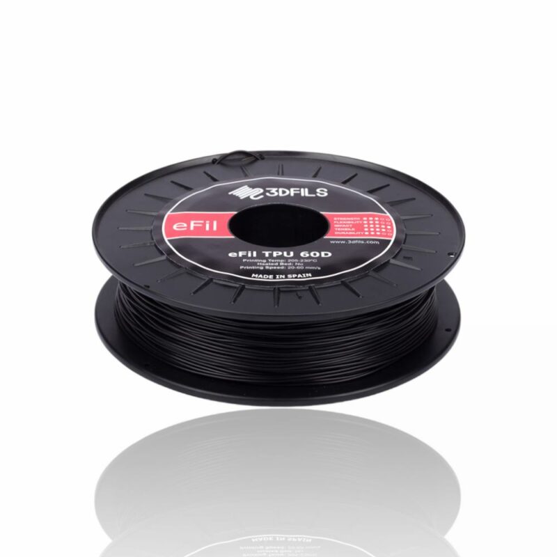 EsFil TPU 60D pertence à família eFil de filamentos flexíveis baseados em TPU. A sua dureza é Shore 60D, que é superior à dureza padrão dos filamentos flexíveis de impressão 3D no mercado. A dureza 60D é a dureza que pode ser encontrada em peças de borracha dura, bem como ter mais alongamento. Esta maior dureza permite trabalhar com filamentos flexíveis com a vantagem de uma maior facilidade de impressão.