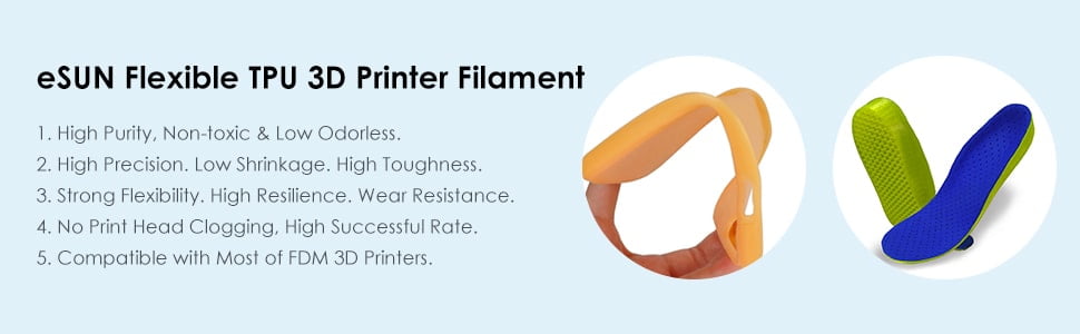 O filamento TPU flexível permite movimentos ou impacto repetidos sem usar ou rachar, que imprime partes fortes que também são flexíveis.