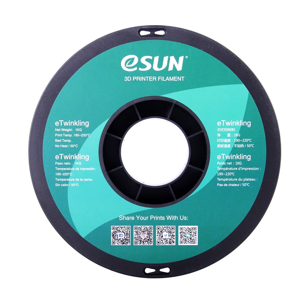 O PLA eTwinkling é feito de material composto de polímero, imprimindo de igual forma como o PLA.