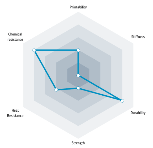 Um material termoplástico e outra opção para o entusiasta da impressão em materiais semelhantes a borracha. Caracteriza-se por uma redução da dureza até 30D na escala shore, muito boa flexibilidade e maior força de impacto.