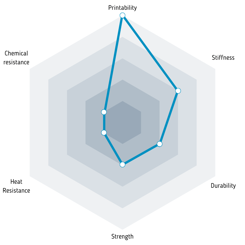 Os parâmetros de impressão são semelhantes ao PLA, as propriedades mecânicas são ligeiramente melhores (semelhantes ao CPE ou PETG).