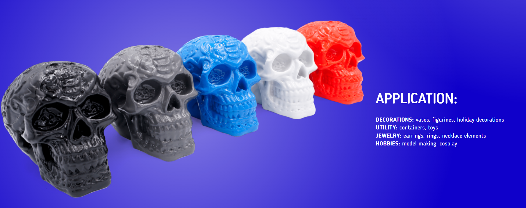 Graças ao alisamento com álcool isopropílico, é ideal para imprimir modelos visuais, tais como vasos não convencionais, jóias, abajures, e outras peças de design.
