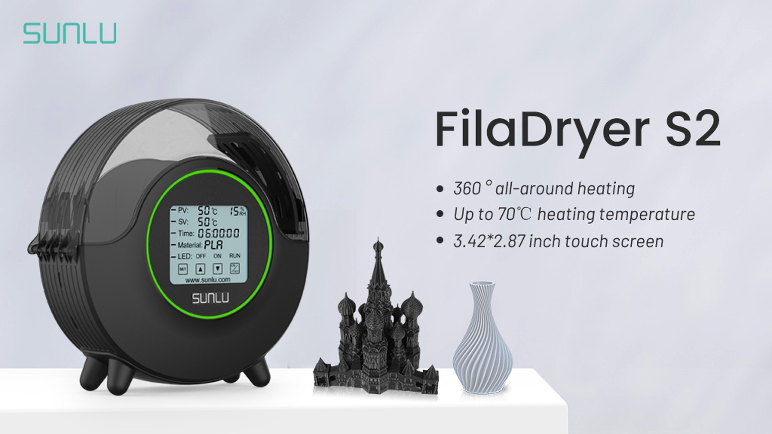 FilaDryer S2 é um produto da marca SUNLU, fabricante mundialmente conhecido e estabelecido no mercado de impressão 3D.