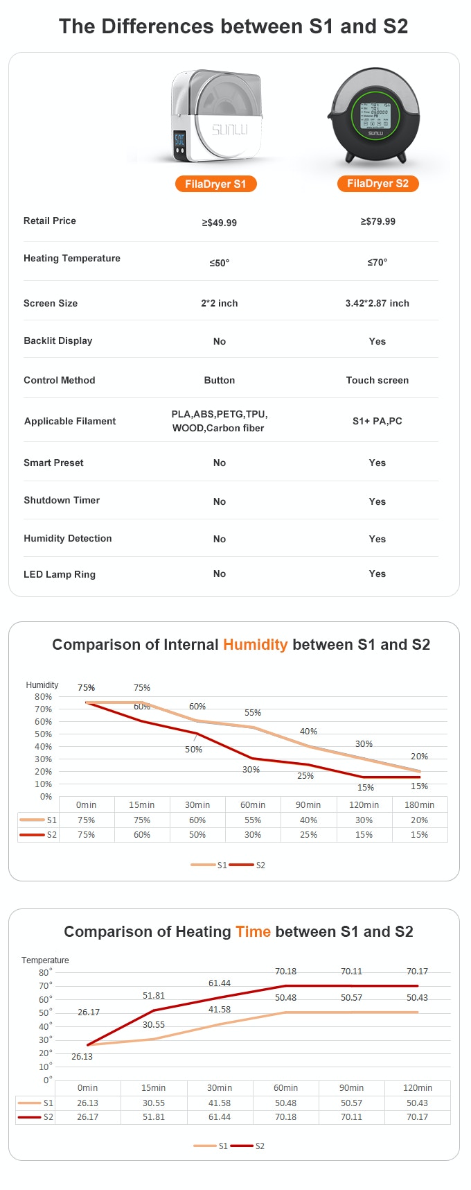 Qual é a diferença entre FilaDryer S1 e FilaDryer S2?