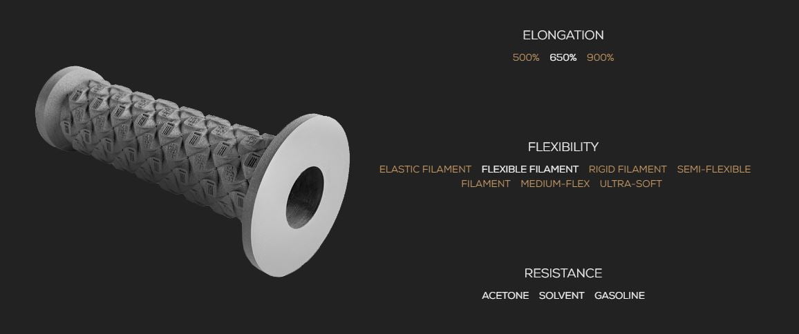 O Filaflex 82A ‘Original’ é um filamento elástico TPE (elastómero termoplástico) à base de poliuretano com uma dureza de 82A, o que significa que pode esticar até 650% antes de partir.
