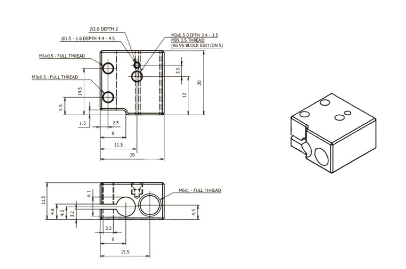 Compatível* com hotend Volcano Clone Alumínio 20X20X11.6.