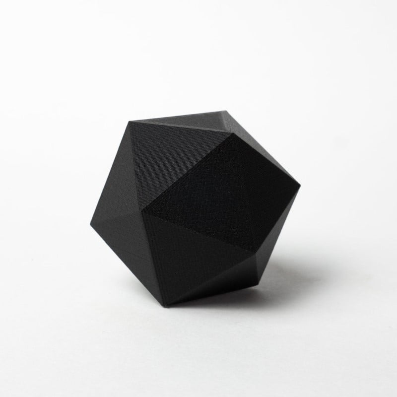 The look of Carbon Fiber without Carbon Fiber. Instead, Black Matte Fiber HTPLA  uses plant fibers for a similar texture and sheen.
