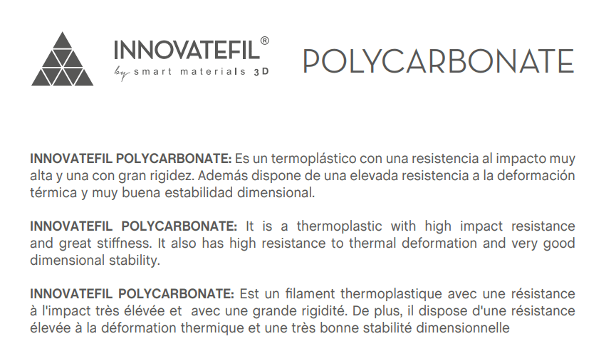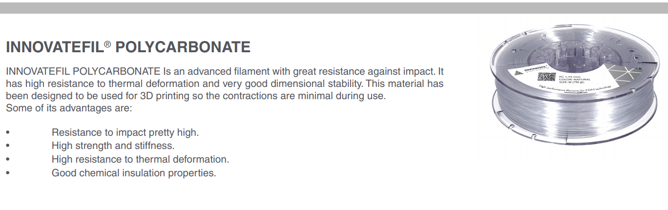 INNOVATEFIL POLYCARBONATE é um filamento PC avançado com grande resistência ao impacto.
