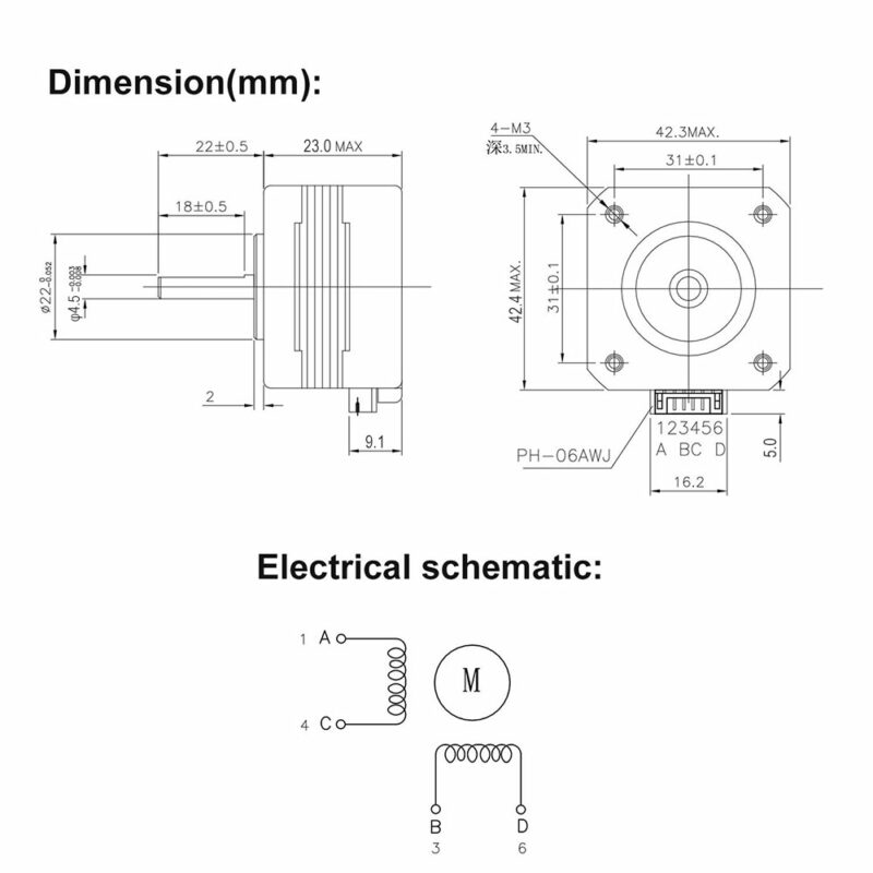 รngulo do passo: 1.8ยฐ
