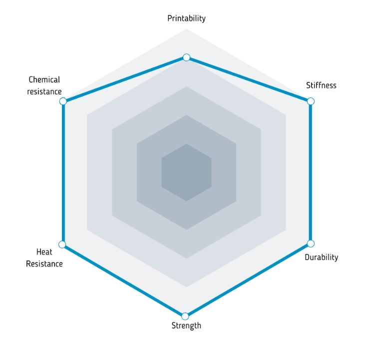 Caracteriza-se por alta resistência térmica e menos encolhimento em comparação com o Nylon PA12 não modificado.
