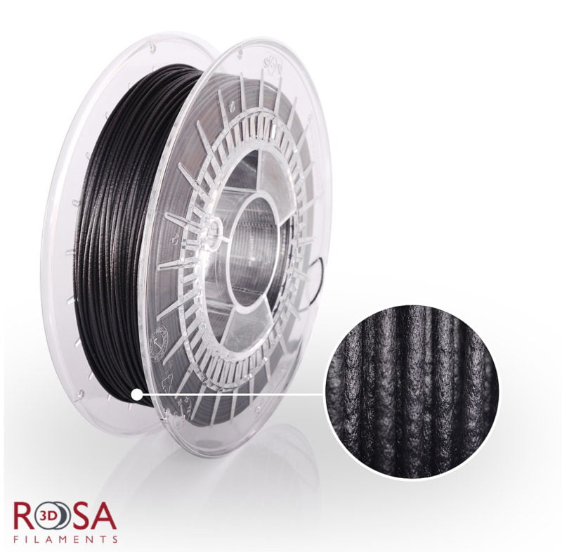 PA+CF15 a marca Rosa3D é mais uma manifestação das capacidades técnicas do filamento Nylon PA que foi reforçado com 15% de adição de fibras de carbono.