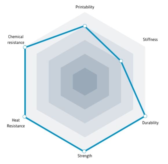 A adição de fibras de vidro permitiu obter um filamento combinando alta durabilidade e resistência ao impacto e resistência a temperaturas e químicos ao mesmo tempo.