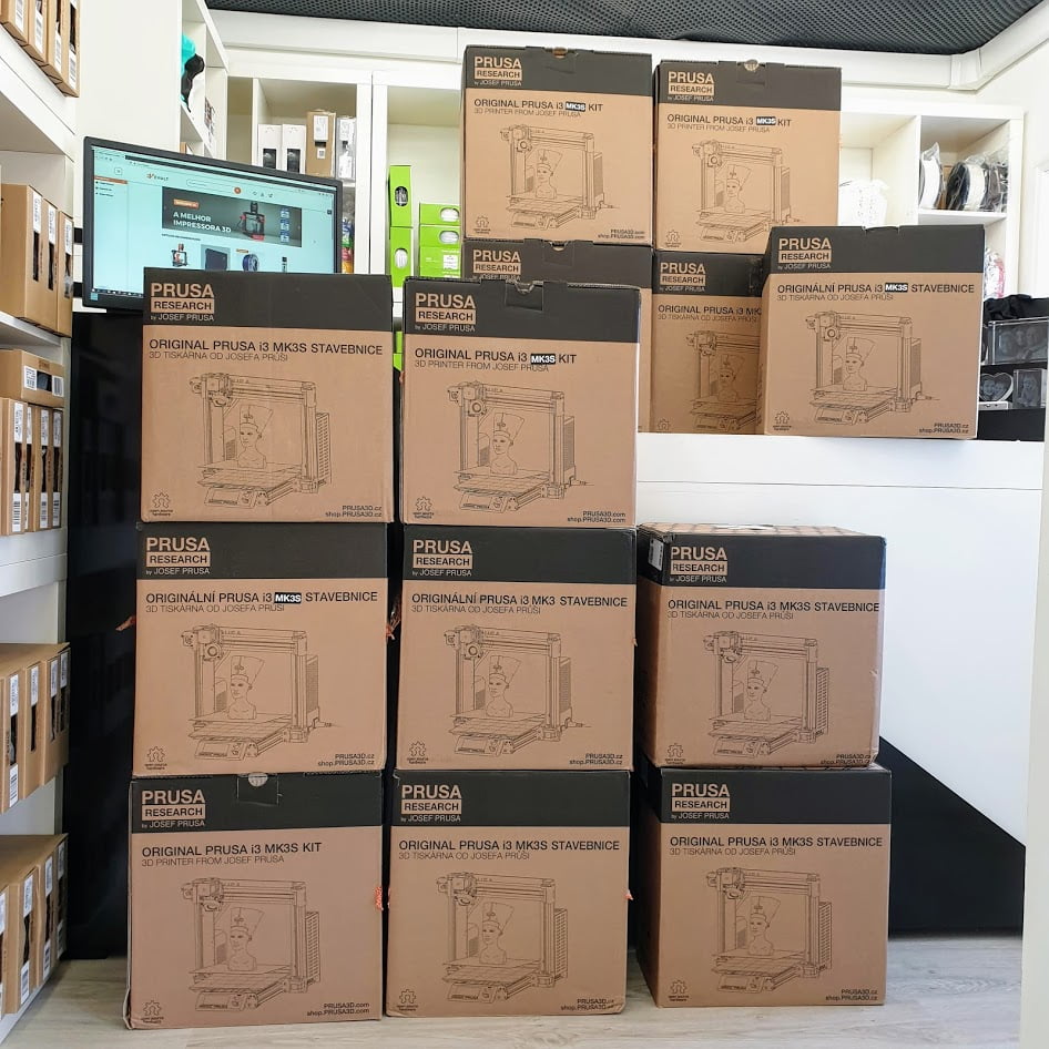 Original Prusa i3 MK3s, das impressoras mais famosas do mercado, largamente utilizada em todo o mundo. Impressora repleta de sensores e automatismos.