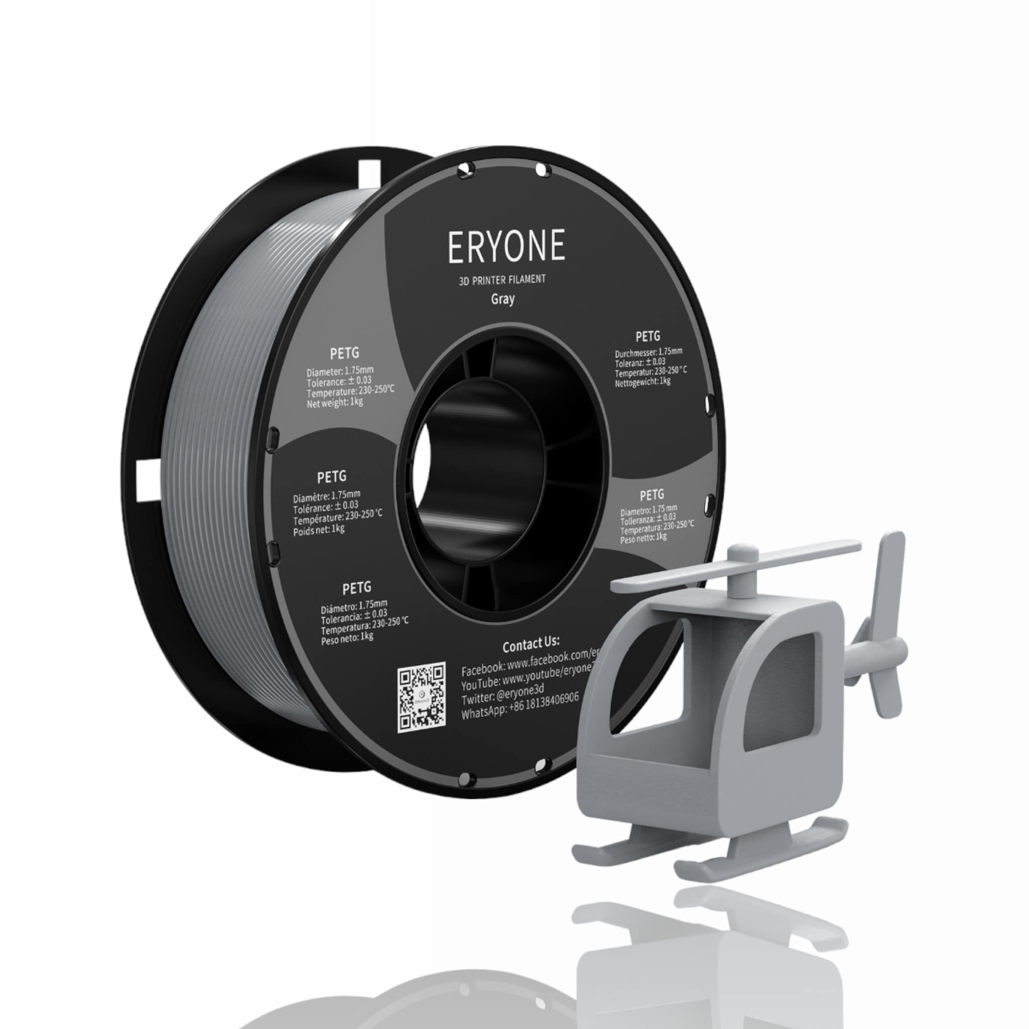 Apresentamos o filamento PETG da Eryone, um material de impressão 3D que oferece características excecionais. Com uma resistência superior à do PLA e uma maior dureza, este filamento destaca-se pela sua capacidade de resistir a impactos, alongamento à rotura e força adesiva superiores às do PLA padrão.