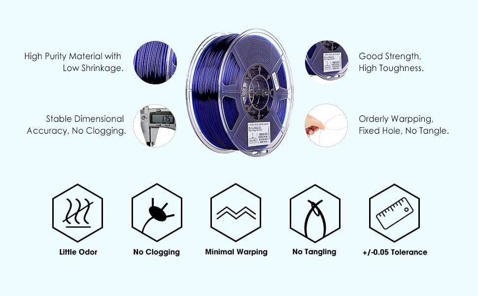 O PETG ESUN é especialmente concebido para facilitar a sua utilização para todos os principiantes e principiantes.