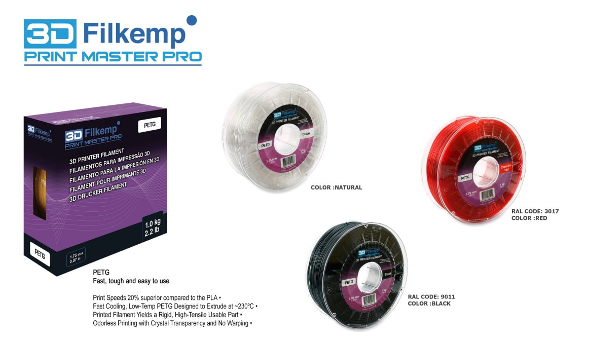 O Filkemp PETG foi concebido para imprimir a uma temperatura inferior à do PETG padrão, tornando-o adequado a uma gama mais vasta de impressoras 3D.