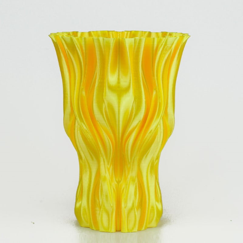 Este filamento a nível de aspecto visual é considerado um  filamento SILK  , sendo um material que se distingue por ter um acabamento metalizado brilhante incrível, sendo muito usado para a impressão de elementos decorativos.
