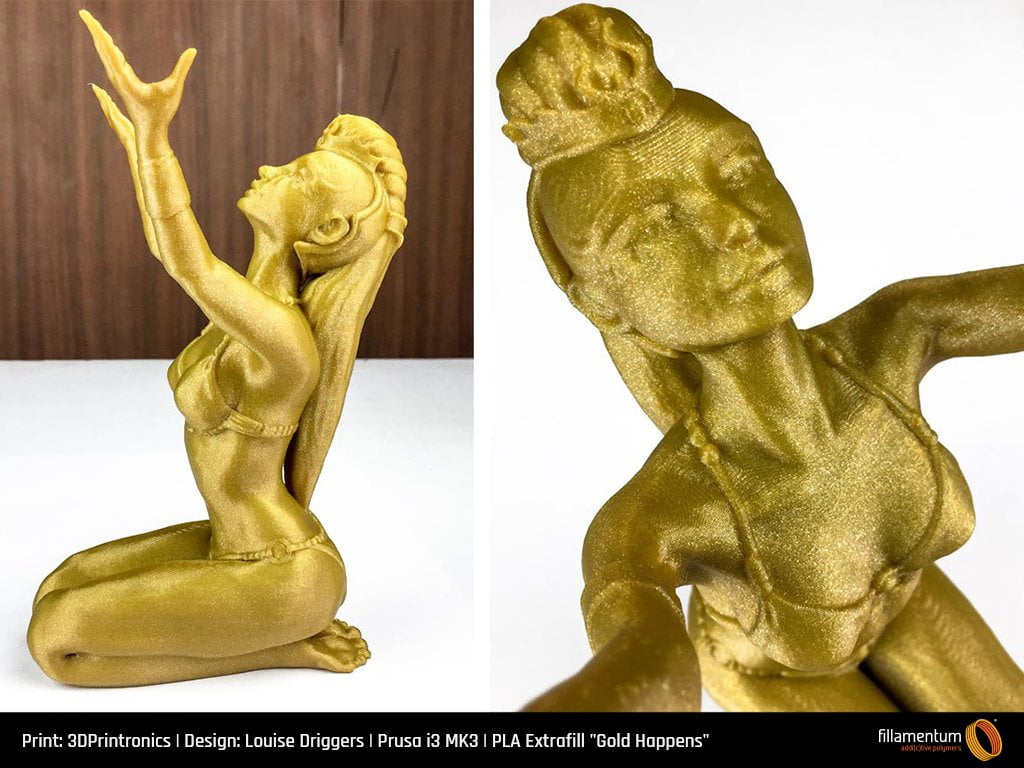 O filamento PLA Extrafill Gold Happens trata-se de um filamento de alta qualidade ideal para obter acabamentos superficiais espetaculares de cor prata perolado. Este filamento permite obter detalhes difíceis de imprimir e oferece uma excelente laminação do objeto impresso. Além disso ao tratar de um filamento pearl ou perolado que oferece reflexos brilhantes.