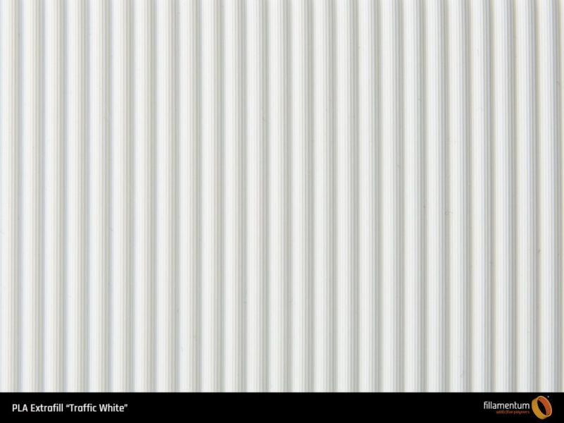 O filamento PLA Extrafill Traffic White (1,75mm ou 2,85mm) é fabricado mediante um estrito controlo ao longo de todo o processo de fabricação. Este filamento PLA Premium garante uma uma alta precisão das dimensões como são uma toleracia de diâmetro de ±0.05mm, com uma excelente circularidade e sem nenhum tipo de impurezas químicas que produzam má viscosidade do filamento. Isto se consegue além de realizando um estrito controlo em todo o processo de fabricação, utilizando uma matéria prima com a máxima pureza. Além disso oferecem-se uma grande variedade de cores segundo a sua referência RAL e Pantone dos filamentos de PLA Premium. Ao estabelecer uns altos standards de qualidade garante-se que em nenhum momento terá variações de cor pelo que nunca terás problemas de qualidade nas peças impressas em séries longas na tua impressora 3D.