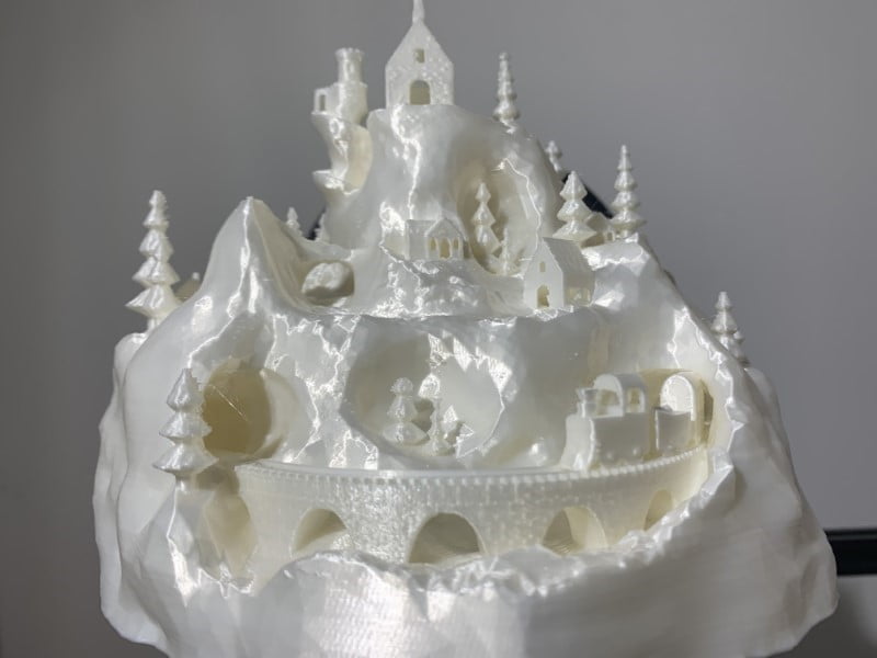 Permite a impressão de peças de elevada resolução e complexidade. Evita deformações nas peças e é útil para a impressão de pontes sem necessidade de suportes.