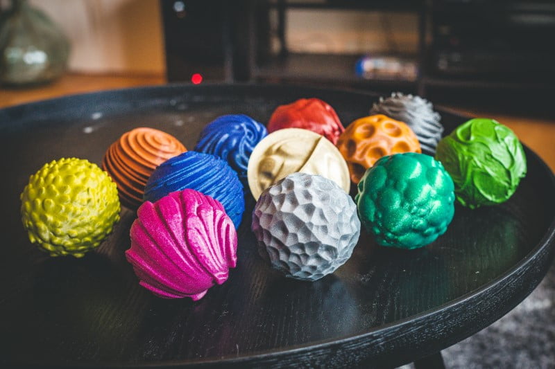 Due to the high amount of silver aluminium-flakes added to the Galaxy PLA compound you can 3D print beautiful shimmering objects without visible layers and subtle colour shadings and radiance. Even though its high silver-aluminium-flaked content Galaxy PLA is not abrasive to the nozzle of your 3D printer.