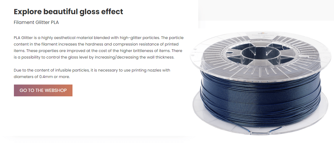 Spectrum PLA GLITTER  é um material altamente estético misturado com partículas de alto brilho.