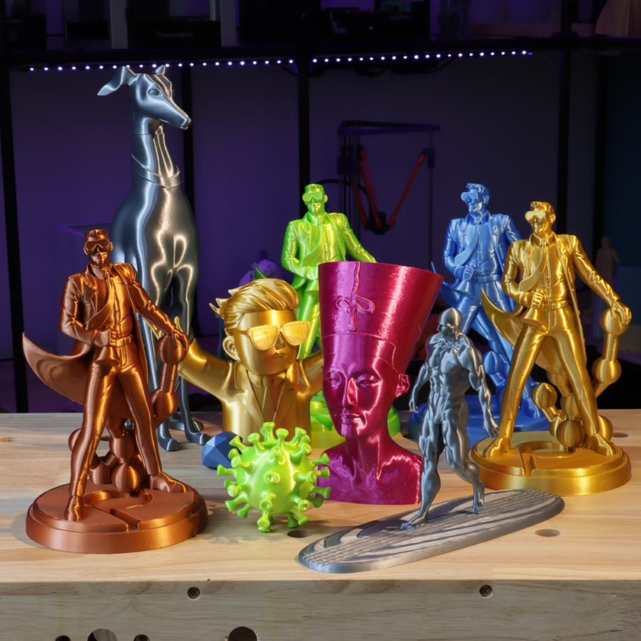 PolyLite™ PLA Silk é um filamento único e fácil de imprimir que produz peças com um acabamento superficial especial de seda e metálico que esconde as camadas.