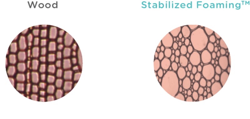 A tecnologia estabilizada Foaming™ é usada para produzir filamentos de espuma, cuja estrutura de espuma pode sobreviver ao processo de impressão e ser herdada pelas partes impressas. Isto permite a impressão de peças leves em 3D com um acabamento de superfície sem precedentes.