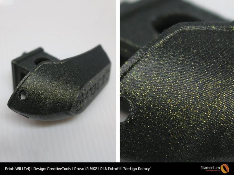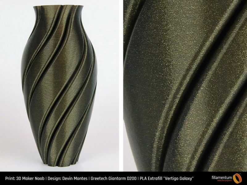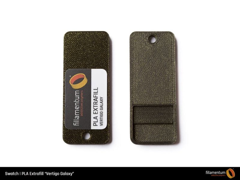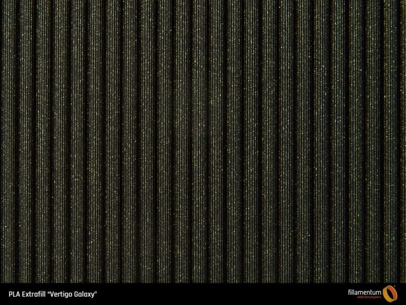O filamento PLA Premium “Vertigo Galaxy” (1,75mm ou 2,85 m) é um filamento de alta qualidade fabricado na Europa para impressão 3D sob o nome comercial PLA Extrafill “Vertigo Galaxy” da Fillamentum. É conhecido pelo brilho incorporado no filamento que dá uma aparência brilhante em áreas com cores esverdeadas. Ao incorporar este brilho, o Vertigo Galaxy permite que você esconda as alturas da camada de peças impressas.