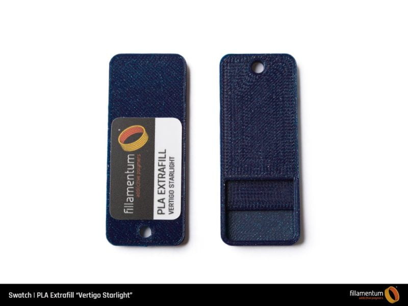 O filamento PLA Premium “Vertigo Starlight” (1,75mm ou 2,85 m) é um filamento de alta qualidade fabricado na Europa para impressão 3D sob o nome comercial PLA Extrafill “Vertigo Starlight” da Fillamentum. É conhecido pelo brilho incorporado no filamento que dá uma aparência brilhante em áreas com cores azuis. Ao incorporar este brilho, o Vertigo Starlight permite que você esconda as alturas da camada de peças impressas.