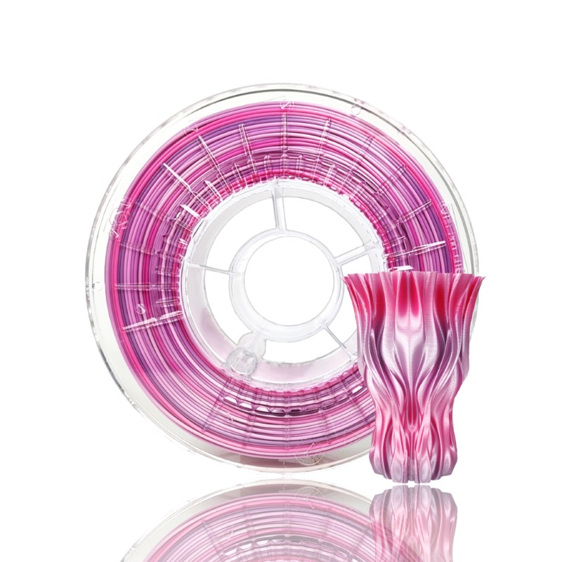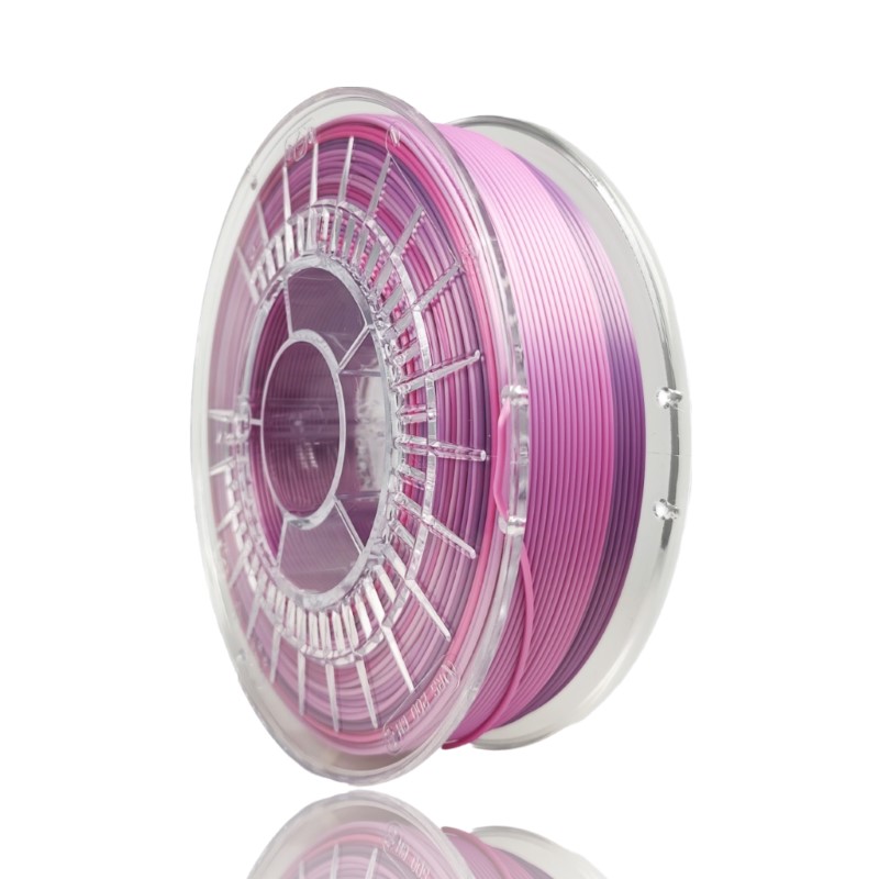 O PLA Rainbow Silk é um filamento à base de polilactida enriquecido com uma mistura única de materiais.
