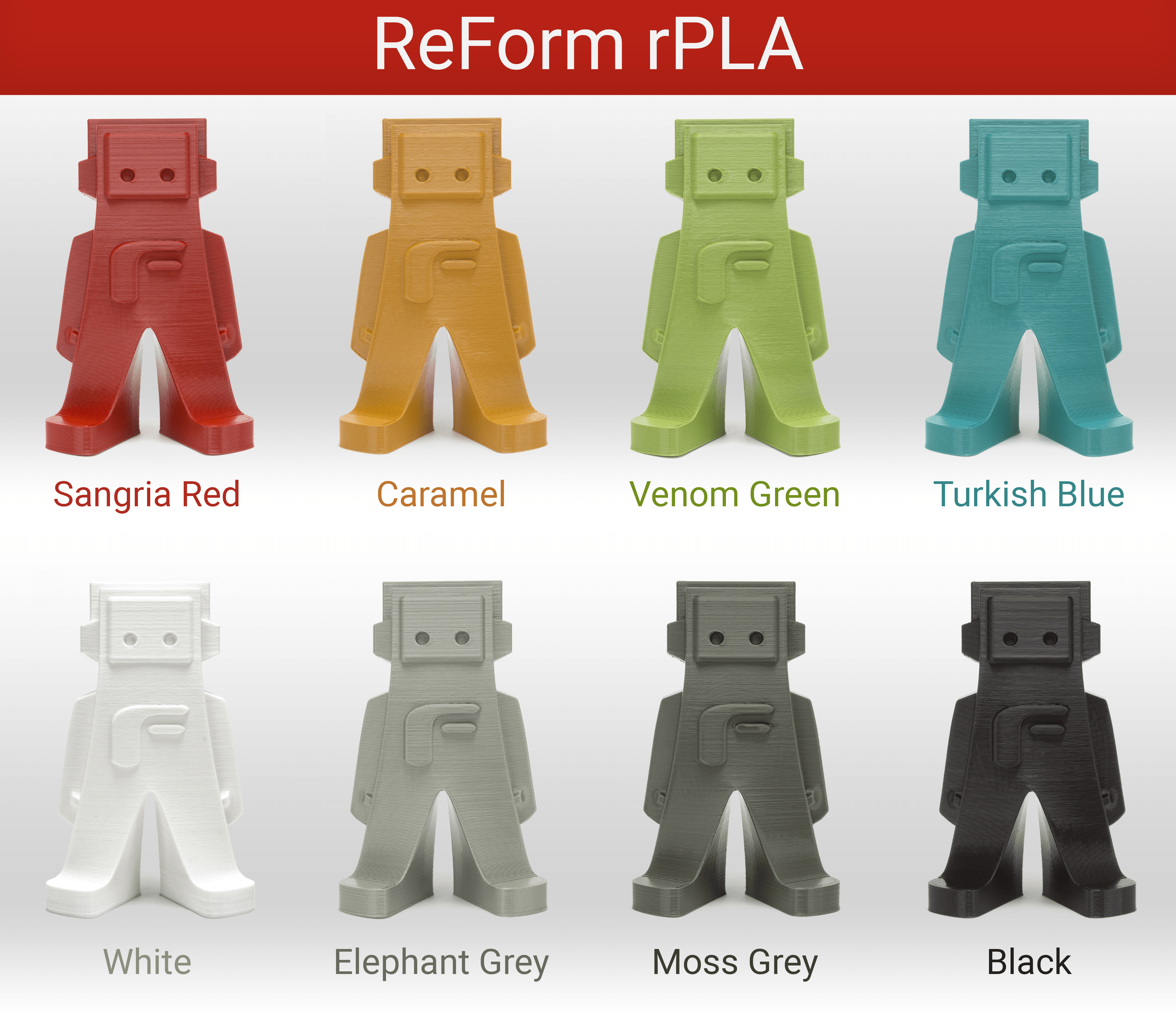 ReForm rPLA is based on exactly the same unique formulation as our EasyFil PLA range, but is made out of residual extrusion waste streams which are re-compounded and homogenized into a high-end and easy to print upcycled PLA filament with significant less environmental impact.