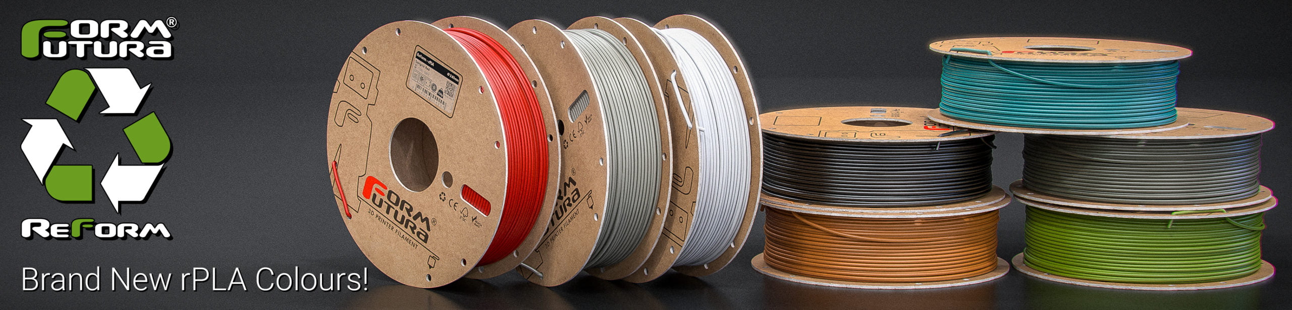• ReForm filaments are spooled on easy to recycle and dispose recycled cardboard spools
