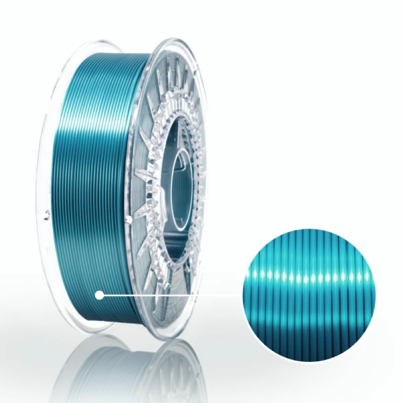 O PLA Silk é um filamento à base de polilactida enriquecido com uma mistura única de materiais.