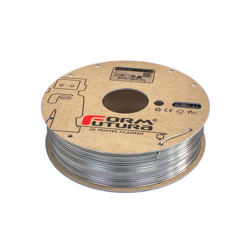 *) If you use a vanadium steel / hardened steel and/or tungsten carbide nozzle then please raise the printing temperature up to 240 – 245° C to maintain the high gloss. If you still have trouble losing the shine, you can drop the part cooling fan to 50% or lower. For brass and copper nozzles you can print at215 – 225° C. Please do feel free to experiment with these settings.