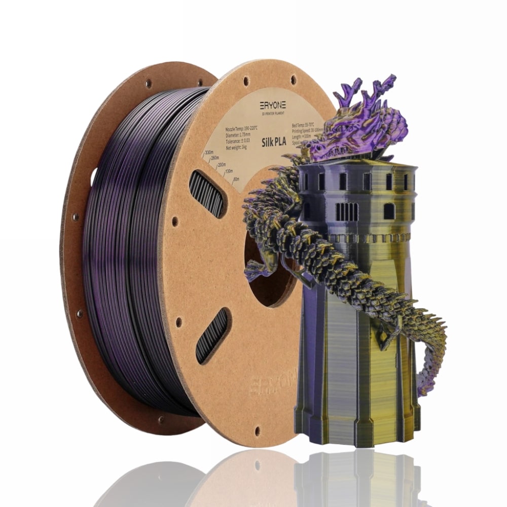 Com o PLA Silk Triple-Color, podes levar a sua impressão 3D a um novo patamar e começar hoje mesmo a dar vida às tuas ideias! Encomenda agora e experimenta a melhor experiência de impressão com a Eryone.