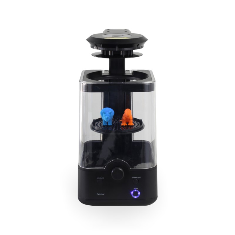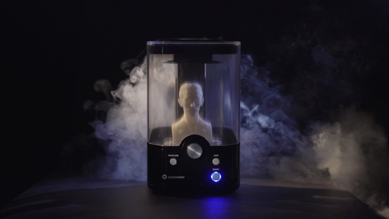 .O Polysher da PolyMaker é usado, como o nome indica, para o polimento de impressões. Uma névoa de álcool isopropanol ou etanol é produzida dentro de uma câmara fechada. Uma fina camada de partículas é depositada sobre a impressão e trabalha a sua entrada na camada superior. Isto elimina as linhas de camadas que de outra forma são comuns na tecnologia de impressão FDM.