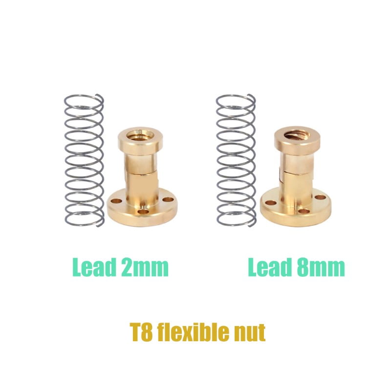 Porca T8 (lead screw) com mola flexível Anti-Backlash para Varões Trapezoidal T8 8mm Lead (Passo) 2mm