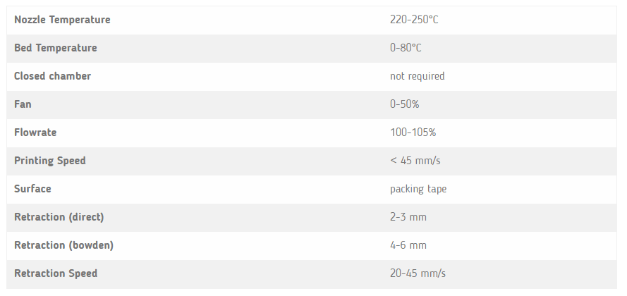Este material é considerado de difícil aderência à superfície da plataforma de impressão 3D de vidro ou PEI. Para evitar problemas de warpping e de aderência das peças, recomendamos a aplicar potenciador de aderência especial para PP.