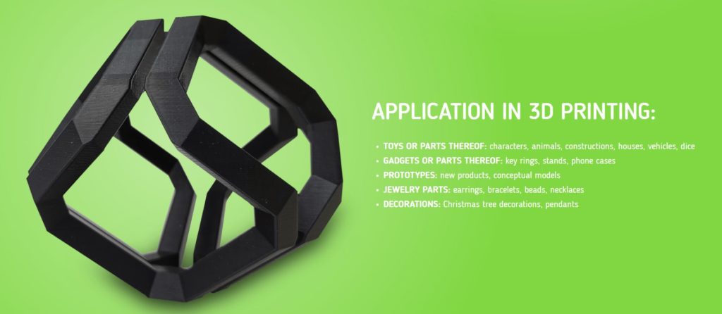 As suas propriedades permitem a impressão de elementos precisos e de formas complexas, sendo que o R PLA pode ser utilizado para criar protótipos funcionais, gadgets, brinquedos e objectos decorativos.